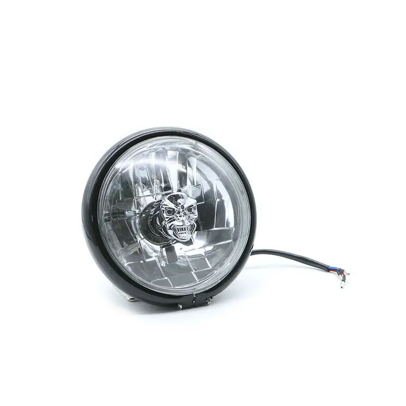 High/Low Beam Retro Skull Light Bulb Side Mount Black Headlight Cruiser Chopper