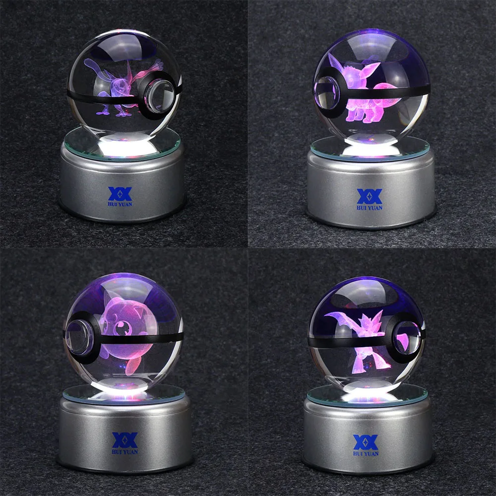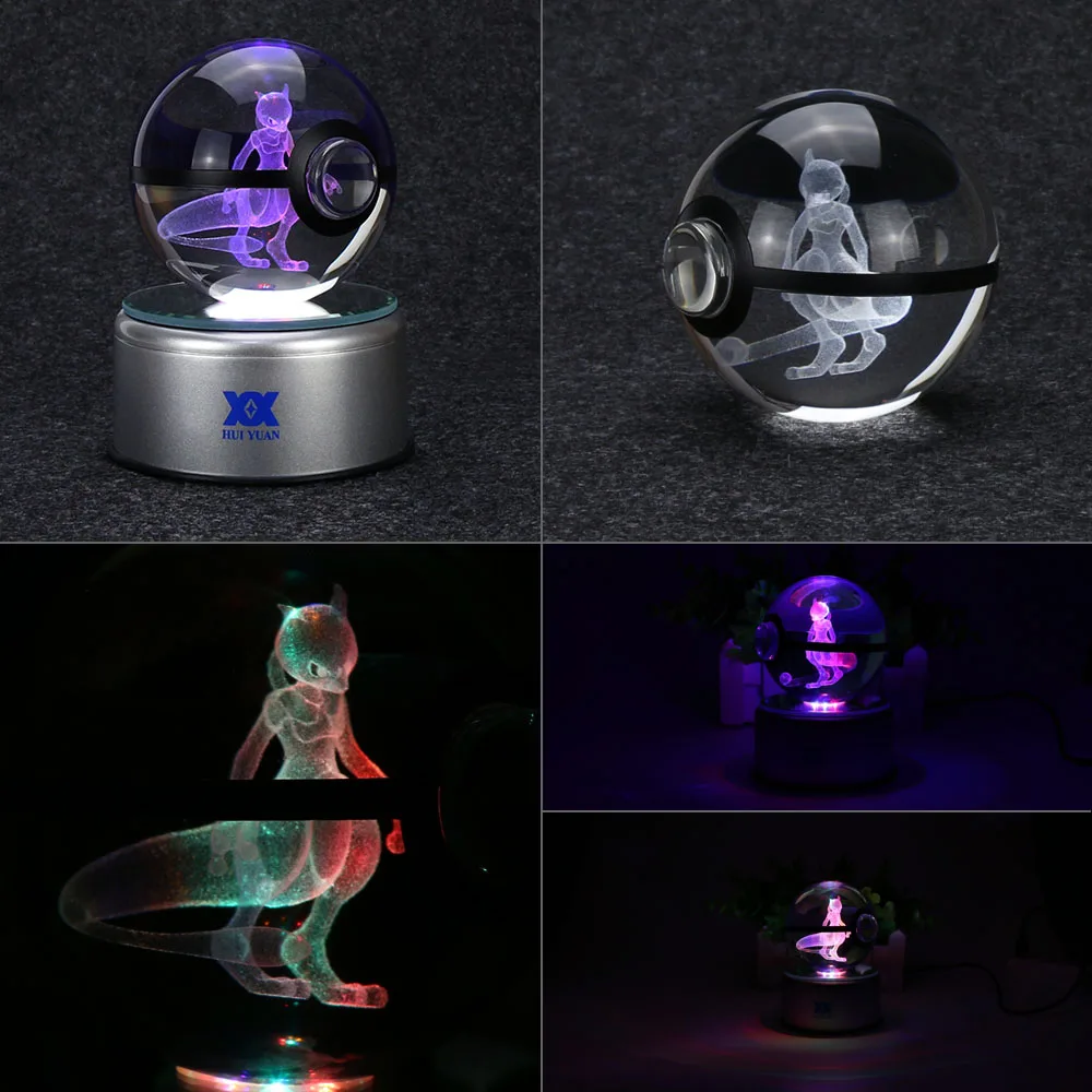 TOP Mewtwo 3D Crystal Ball Pokemon Go Light Glass Ball Engraving Round With Black Line Ball LED Colorfu